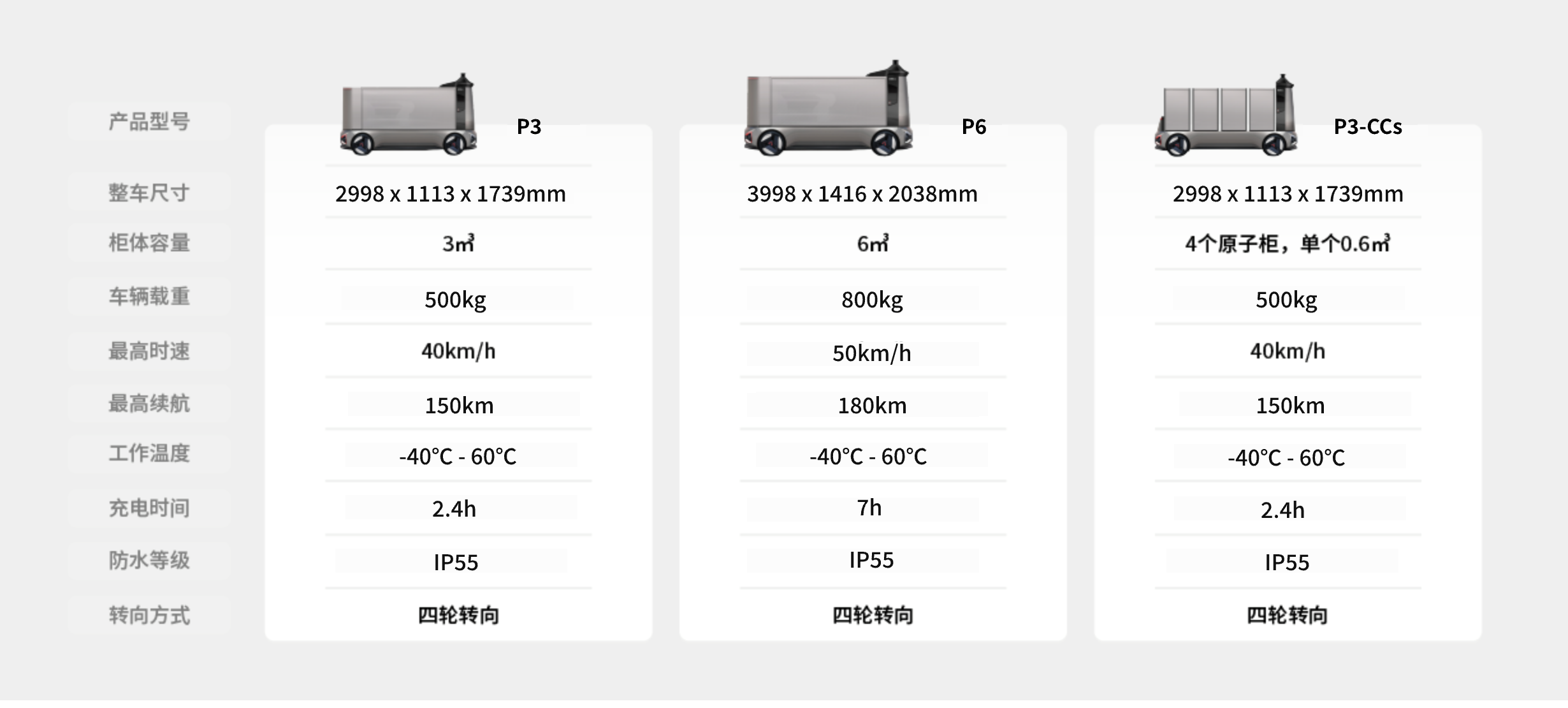 P3-CCs无人车搭载可灵活装卸货柜,持续降低运力成本